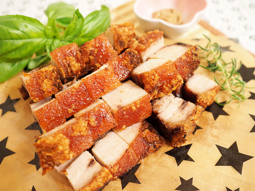 女兒十分喜歡吃乳豬和燒肉, 尤其那脆卜卜的皮, 每次都追着吃, 在網上看見不少人自家做燒肉, 我也試試做. 做脆皮燒肉的材料不多, 就是五花肉一塊, 加調味料, 但步驟多, 先事準備功夫不少, 不過看見成品如街外賣的燒肉一樣, 感覺是相當滿足的.