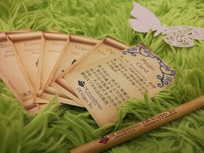 另外食tea set還會贈送「魔法咭」五張,每張「魔法咭」均介紹一種香薰精油及其療效, 每天隨心抽一張, 給予生活一點啟發. 另外會有一張蝴蝶願望咭, 記得要把願望寫出來, 貼在店內的願望牆上, 用信念令願望成真!
